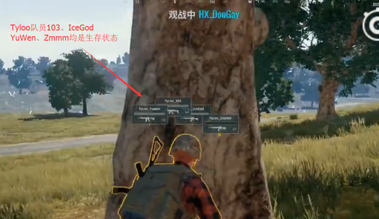 随后,HX最后一名队员躲在树干后面,尽管将Tyloo队员打成丝血,但是暴露位置后的他最终惨死在Tyloo的四人围剿之下,此刻满编人员的Tyloo成功吃鸡。