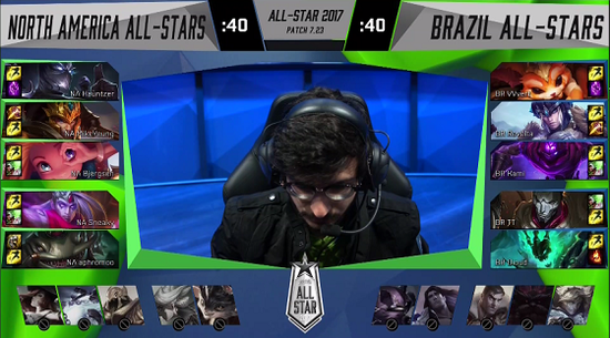 12月8日,2017年英雄联盟全明星在洛杉矶开打。揭幕战在北美LCS和巴西CBL之间进行。最终,北美轻松击败巴西,取得开门红。