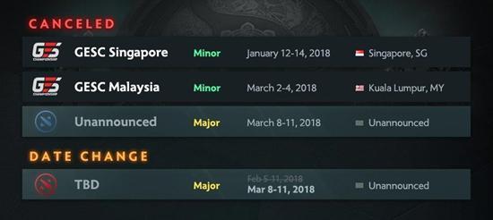 这是目前为止本赛季第四项发生变动的赛事。之前在11月份,Beyond The Summit取消了原定3月8-11日举行的Major;随后月初的12月4日,GESC宣布两项东南亚Minor“延期”,但未说明具体延期至何时。