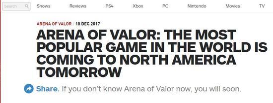 今天,《王者荣耀》海外版《Arena of Valor》登陆北美市场。为此,IGN还发文称“王者荣耀是全球最火的游戏”。