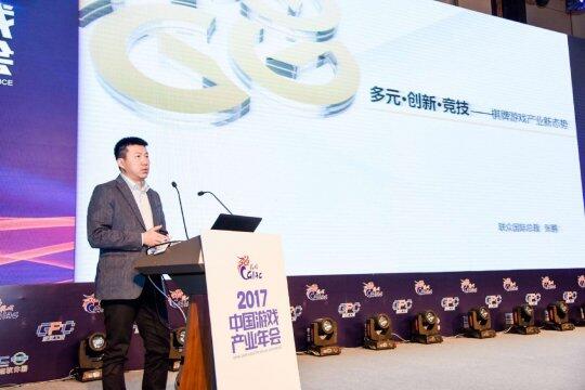 12月19日,由国家新闻出版广电总局主管,中国音像与数字出版协会、海南省工业和信息化厅、海南省文化广电出版体育厅、海南省商务厅主办的“匠心筑梦,2017年度中国游戏产业年会”在海口开幕,联众国际总裁张鹏出席并发表“多元?创新?竞技——棋牌游戏产业新态势”主题演讲。