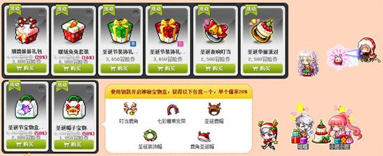 冒险岛商城双旦福利劲爆来袭,圣诞期间,驯鹿妹妹礼包”、“暖绒兔兔套装”、“圣诞节装饰礼包”等经典道具温情回顾;“圣诞特效宝物盒”改版重组,限时半价出售,另有“圣诞老公公骑宠”、“圣诞雪橇”等圣诞特别版骑宠登录骑宠万花筒;“绿光森林名片戒指”、“圣诞节恋人礼包”等明星道具也分批上架游戏商城,品种多样,款式精美,抢购要迅速哟~