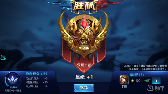 目前剑仙已经拿到了李白战力破万的成就,并且是在荣耀王者85星局,离自己的目标:百星王者只差临门一脚。如果不出意外的话(比如无限被狙击、无限被演、连输十几把,但是脸得多黑才能碰到这样的情况),剑仙应该是稳稳地这个赛季第一个王者了。