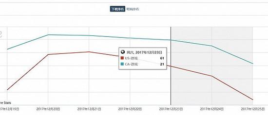 从榜单可以看到,《Arena of Valor》的排名在圣诞节期间都有所下降,其中很有可能是因为外国人圣诞节“过年”的缘故。这一情况与《王者荣耀》在2017年春节的火爆截然相反,看来没有背靠庞大的社交平台,《王者荣耀》在海外市场也难以迅速打开局面。