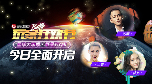 360游戏玩家狂欢节今日正式开启,百款热门游戏集结,六大游戏星球火爆开战,苏醒林允王蓉众明星联手为活动疯狂打Call!抢夺海量福利,赢宇宙至尊包养奖,现在让我们赶快加入这场星球大Battle!