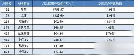据十月易观千帆app用户活跃数据显示,以用户规模与活跃度两大指标为依据,目前占据主流位置的仅有斗鱼虎牙跟熊猫tv三家平台。而斗鱼的优势又十分明显,占据着最为重要的地位。