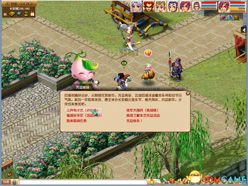 四海升平,万国来朝,一年一度的长安烟火音乐会也即将举行。今年唐王希望从三界中招募有特殊才艺的人士,以扭转近些年来千篇一律的情况。玩家组队(等级≥30级,队伍人数≥3人)可以在长安城(240,110)元旦娃娃处选择“三界有才艺(环任务)”任务,完成任务均可以获得丰厚的经验、金钱和随机元旦积分奖励,还会获得额外的元旦积分奖励。期间少还侠将化身选秀导师,为一年一度的长安烟火音乐会选取才艺人士的精彩表演,让繁华的长安万众瞩目,异彩纷呈。