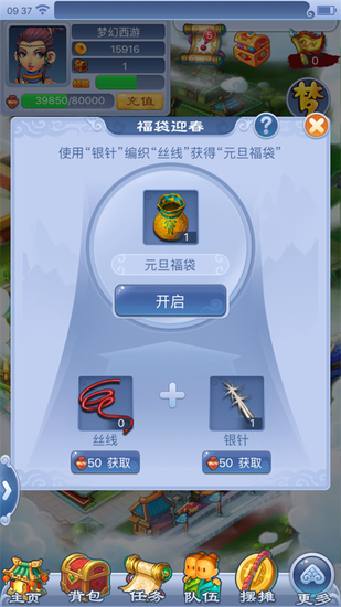 元旦佳节到,三界同庆,共迎新年。每天登陆口袋版即可前往“日常登陆”中领取登陆奖励以及一个“辞旧迎新”葫芦。打开葫芦一定获得经验及储备金,并有机会额外获得物品奖励。而且新年来到,口袋幻境飘来一片奇幻雪花。据说这些雪花充满着灵气,用这种奇雪堆出奇妙雪人将会获得包含高级魔兽要诀,特赦令牌,高级召唤兽内丹等神秘大礼。不仅如此,元旦娃娃携福袋来到口袋幻境,各位玩家若是有缘即可获得“福袋”。活动期间,开启师门、抓鬼、副本葫芦均有机会获得一个丝线。“丝线”和“银针”也可以通过精力购买,两种材料每天共可购买20个,据说福袋内藏各种惊喜哦!