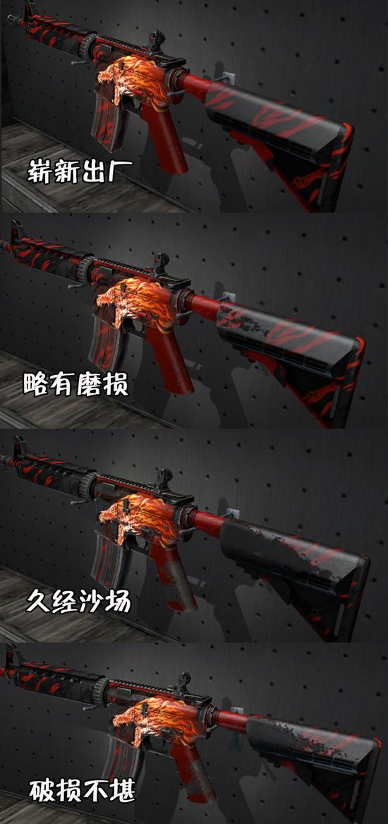 红鹰是全磨损区间,不吃磨损吃亮度,随着磨损提升,亮度越来越暗。从外观上来看,久经、略磨、崭新均可,只有亮度差别,挑一款自己喜欢的即可。