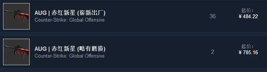 作为一款冷门枪AUG的皮肤,赤红新星的价格是吓人的,当然比不上二次元皇帝——秋叶原的价格恐怖。不过崭新484元,略磨785元的价格会让大多数玩家望而却步。玩多少场也不会买到的一款枪,花这么多有点不太划算。但它的价格并非只是赤红新星好看,更重要的原因是它是合成渐变格洛克的素材,10把AUG|赤红新星将有50%概率合成出格洛克|渐变之色。如果想买的话,只推荐低磨崭新哈。
