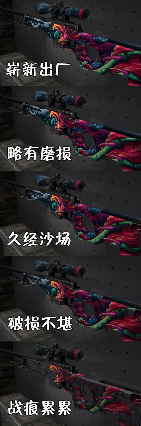 图片来自网络,高于0.95磨损的暴怒野兽会变成“红龙狙”,蓝色背景全部磨掉
