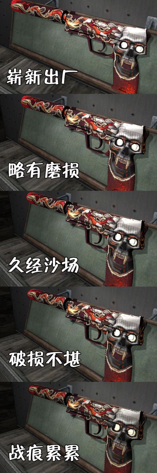 炽烈之炎是卡磨损皮肤,磨损区间为0.00<<0.08。炽烈之炎非常之磨损,沙鹰甚至比UMP45还要吃磨损。优先磨损位在套筒防滑出,即便是0.01磨损也能看到明显磨损。所以如果钱够的话,磨损越低越好。