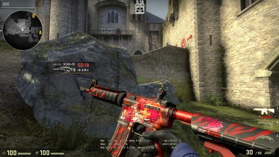 下面说一把萌新最爱的狙击枪——SCAR-20,射速快、伤害高特别适合防RUSH B。红色的深红之网充满了神秘,因为你永远不知道它会出现在哪里。