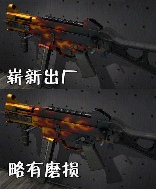 炽烈之炎也是卡磨损皮肤,磨损区间为0.00<<0.08。这款皮肤比较吃磨损,即使崭新也能看到明显磨损。所以从外观看,GO哥推荐0.01以下磨损的崭新皮肤。