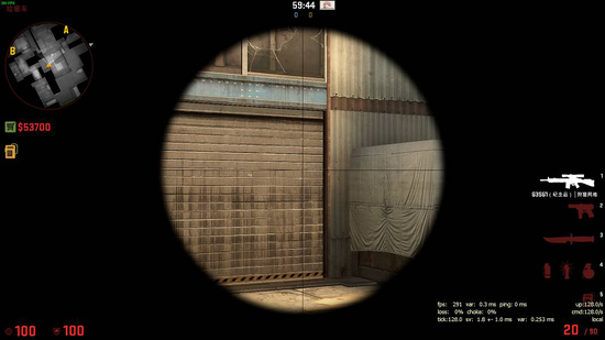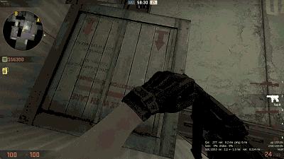 并且,值得注意的是,不同的枪械对于不同的掩体的穿射能力也是不同的。比如铁门这个掩体,我用AWP就可以进行理想的穿射,但是如果我拿一把UMP-45这样的微冲,再面向铁门开枪,那这就是徒劳无功了,因为子弹根本无法穿过这个掩体。