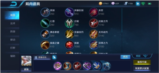 打野出装:肉刀+攻速鞋+吸血刀+暗影战斧+破军+破甲弓