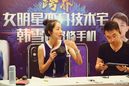 而自从韩雪在斗鱼直播跨界当了一次主播,跟科技美学那岩共同直播苹果发布夜的拆机换屏之后,网友们再次给了韩雪“科技女主播”的称号。早在之前,韩雪就在微博上放过自己修手机的照片,但有网友质疑韩雪摆拍。因此韩雪在斗鱼的直播可谓是“力证清白”,手法娴熟不说,仅凭一把瑞士军刀便拆装了一部苹果手机可谓令网友瞠目结舌,斗鱼的弹幕更是亮起满屏的666。直播当晚韩雪就凭借惊人的形象反差登上微博热搜,网友在惊诧之余更是开启了玩笑,直呼“女神不如转行吧!”