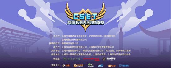 CSET两岸校园电竞邀请赛由上海市海峡两岸交流促进会、沪测信息科技(上海)有限公司、上海戏酷文化传播有限公司共同主办的两岸电竞交流赛事。CSET两岸校园电竞大赛希望能够通过电竞赛事,拉近相隔千里的两岸青年交流距离,为充满活力的高校青年搭建沟通桥梁。