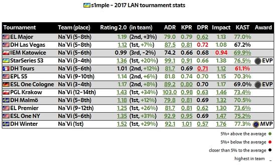 虽然这些数据有一部分是s1mple在DreamHack Open Winter,这个只有一个TOP10队伍参加的中型比赛中,累积下的数据。但我们不能完全忽视这个比赛,因为这可以说是年度最佳的个人秀之一。