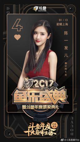 陈一发儿发姐不必多说,这次虽然没有入围三强,但在鱼乐盛典中表现同样圈可点。作为直播界为数不多的拥有传唱度极高作品的女主播,发姐此次在颁奖典礼的演唱曲目令大家十分关注,而从斗鱼官网信息来看,陈一发儿似乎是要演唱《弦上有春秋》,发姐将如何在现场这首很极具中国韵味的歌曲也让粉丝大呼期待。