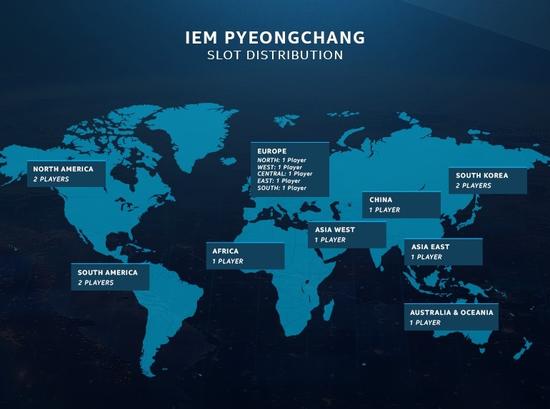 为了体现奥运会面向全世界的理念,本次IEM12平昌站增设了多个分赛区如非洲、东亚、西亚、大洋洲、南美等,每个赛区的出线名额最多为4个(北美区),而实力最突出、又是东道主的韩国区也只有两个名额,最大程度上避免了韩国选手占据半壁江山的场面出现。