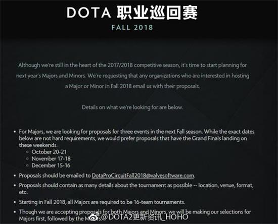 距离TI8还有很长一段时间,不过V社已经开始着手准备TI8之后的三个联赛的相关事宜,并在官博放出TI8以后DOTA职业巡回赛甲级联赛的申请讯息。