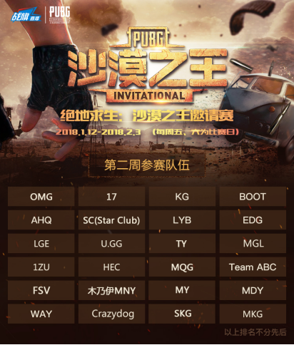 本周五、六(1.19-1.20)晚八点,《绝地求生:沙漠之王邀请赛》精彩继续