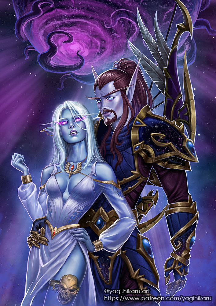 来自国外画师Hikaru Yagi的作品,虚空精灵大叔和夜之子妹子。这段跨越了阵营的感情在战火弥漫的艾泽拉斯真的是难能可贵呀~