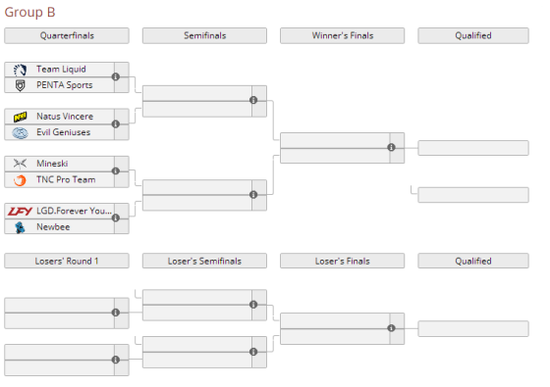 B组——Liquid、PENTA、NAVI、EG、Mineski、TNC、LFY、Newbee