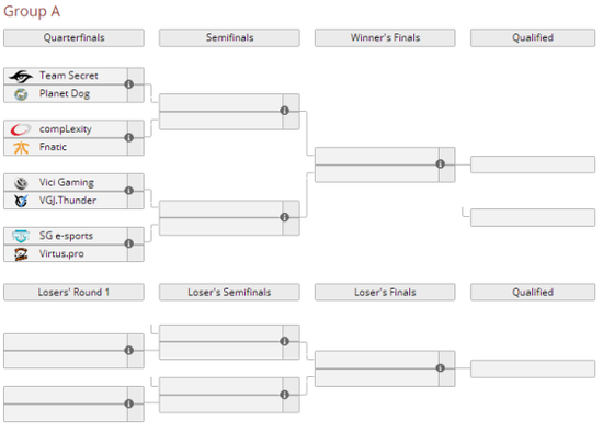 A组——Secret、Planet Dog、COL、Fnatic、VG、VGJ.T、SG、VP