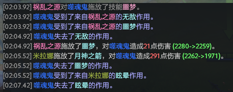 在之前的文章中(即时技能的生效原理:浅谈Dota2中的睡箭组合),我谈过有关“睡箭组合”的生效原理,从战斗日志中我们可以看到,月神之箭的伤害先于眩晕产生,而这个伤害导致了噩梦效果的消失,眩晕效果的产生。