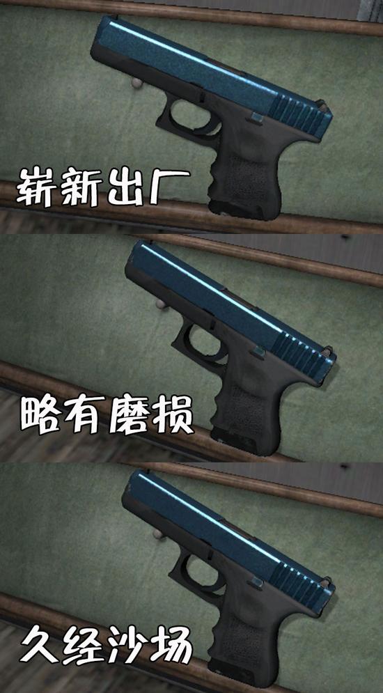 钴蓝禁锢是款卡磨损皮肤,磨损区间为0.00<<0.20。钴蓝禁锢极为吃磨损,优先磨损位主要在枪套筒后端防滑处。从外观来看,只推荐崭新,磨损值越低越好。
