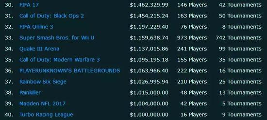 就如悄无声息达到2500万销量一样,《彩虹六号:围攻》的电竞赛事也给人十分低调的感觉。两年的多的时间里,《彩虹六号:围攻》大型的公开赛事加起来不过二十多场,总奖金刚超过了100万美元。在总奖金排名中,《彩虹六号:围攻》位于所有电竞项目的第37名,而前一名则是发行不到一年的《绝地求生》。