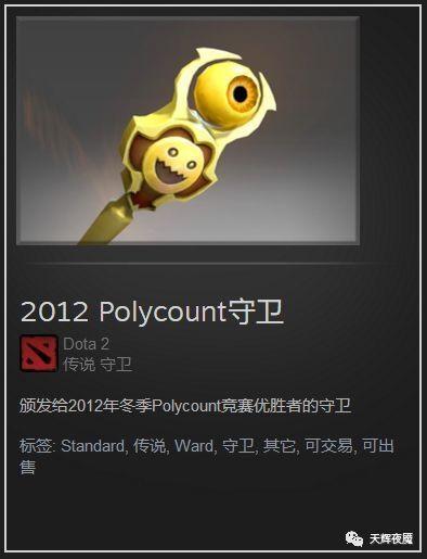 DOTA2 目前有各类守卫饰品 69 个,其中‘传说’稀有度的仅有 2 个,其中一个名字颇长,叫作‘2012 Polycount 守卫’,这个守卫的故事,可不简单。