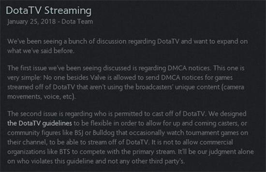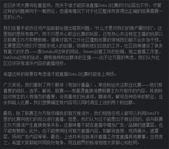 同时他们还引用了之前V社发布的关于比赛转播的一则申明: