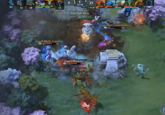 第三局LIQUID抢了小娜迦,并祭出奇迹卡,NB选出飞机加猴子的双核,前期两队拼的很凶,6分钟人头6-6。接着NB双酱油不停找节奏,LIQUID大哥VS站不了线,被迫游走支援,结果没杀到人,导致经济越打越崩。NB乘胜追击,拆了两座一塔后持续压制LIQUID野区,LIQUID被压在高地上下不来,大哥只敢偷偷摸到野区打钱。16分钟,LIQUID趁NB回去收线的时间偷了肉山盾,但NB马上进野区抓了VS,杀掉VS两条命。