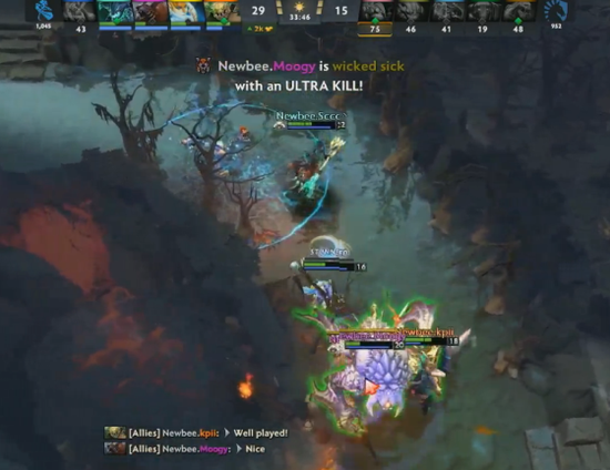 18分钟,LIQUID抓了逛街的小强,顺便拿了肉山,然后破掉上二塔直接上高,NB正面溃败,LIQUID打出0换4,破了上路高地。23分钟,LIQUID继续中路上高,NB秒了龙骑电魂,但完全处理不了带盾小狗,NB杀了其他四人,小狗交盾撤退。27分钟,光法A杖宝石开雾找人,但双方装备差距过大,LIQUID团灭NB,破掉中路,NB打出GG。