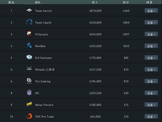 本次赛后对于Ti8总体积分榜带来的变化并不大,前四名仍然是遥遥领先的Secret以及Liquid、VP、Newbee。EG则在本次比赛中凭借获得的积分超过了VG和Mineski,成功跃居到第五的位置。