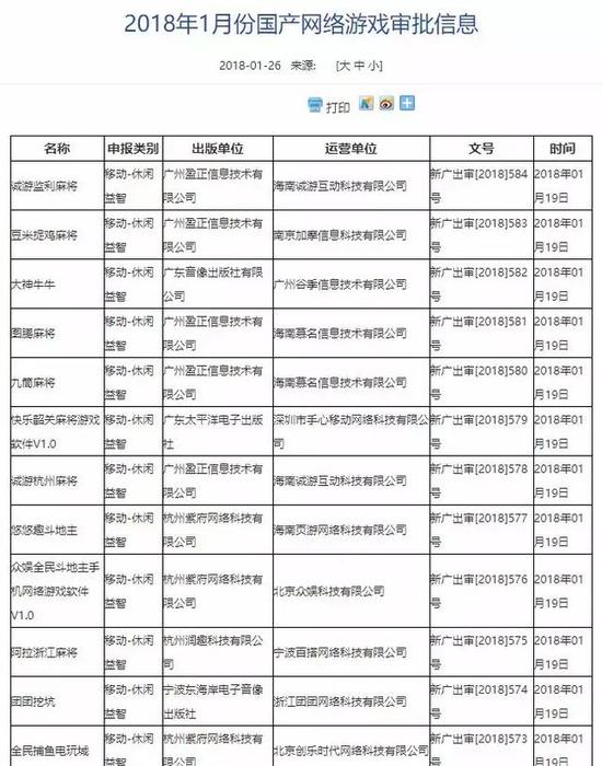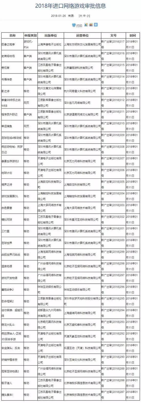 日前,国家新闻出版广电总局公布了2018年1月的国产和进口网游审批名单。