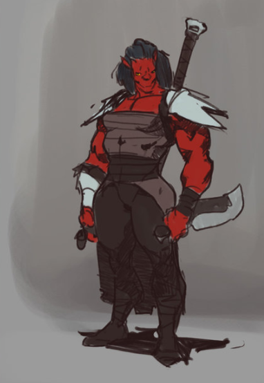 这个女性的人物和斧王同属于DOTA2中一个叫Oglodi的种族,该种族在DOTA2还有小狗,萨尔和术士,但是上图的这个形象我们可以几乎确认为一个叫“Sorla Khan”的女性“Oglodi”,该角色多次出现在英雄的语音对话中。