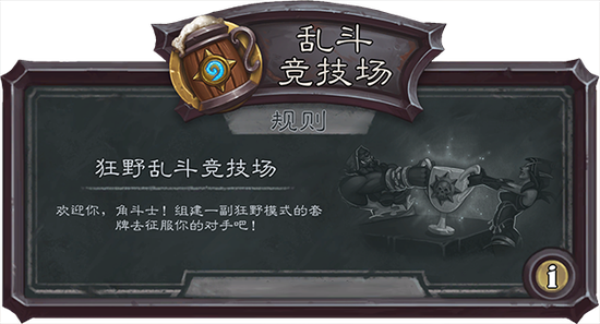 狂野乱斗竞技场是为想要测试自身技巧和卡牌收藏深度的竞技型炉石玩家准备的狂野乱斗。在狂野乱斗竞技场中,玩家需支付入场费,然后组建套牌——该套牌会在比赛持续期间锁定。玩家将互相对战,直到获得12场胜利,或输掉3场比赛。在狂野乱斗竞技场中获得的奖励与现有的竞技模式一样。准备好参与进来,在狂野乱斗竞技场中大展身手吧!首次进入狂野乱斗竞技场是免费的哟!