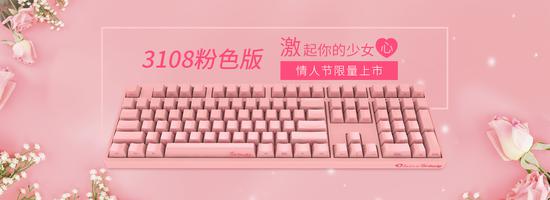 北京时间2018年2月7日,艾酷Akko X Ducky发布3108侧刻全粉色版本,在即将到来的情人节,为大家带来了非常棒的”情人节礼物“,售价399元,目前有红轴可购,年前到货仅100支。