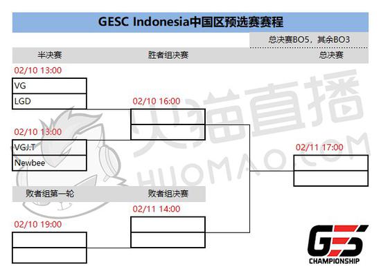 GESC 印尼站中国区预选将于2月10日-11日进行,中国区预选直接邀请Newbee、VG、LGD、VGJ.T四支战队参赛。在冬季转会窗口关闭以后,Newbee和VG两支国内一线强队没有进行人员调整,而经过调整的LGD和VGJ.T在最近的DAC预选赛上的表现也不落下风,中国区预选赛必将又是一场鏖战。