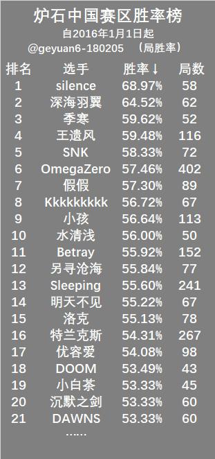 其实silence早在2016年夏季赛就已成名,还夺得过16年黄金赛上海站的8强。但由于比赛场次不够,未能在榜单中显现。