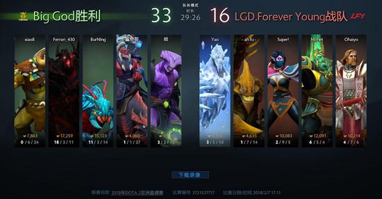 之后的胜者组半决赛,VGJ.T连下两城击败Eclipse率先进入胜者组决赛。Big God则在首局落败,第二局中期落后的情况下稳住局势稳扎稳打,在恐怖利刃成型后拿下比赛将比分扳平,并在第三局打出了出色的配合,逆转进入胜者组决赛。而Eclipse和LFY则将在败者组中继续自己的征程。