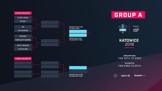 本次ESL One卡托维兹站赛制将沿用ESL One云顶站赛制,16支战队分为两个小组进行BO3双败淘汰赛,前三名晋级淘汰赛。从分组情况来看A组整体实力相对突出,TI8积分前八战队中有5支被分在A组。VG将在首轮面对OG,虽然OG在2017年下半年整体发挥不佳,但最近他们连续取得了三个Major赛事欧洲区预选赛的冠军,VG面对OG时万万不可掉以轻心。
