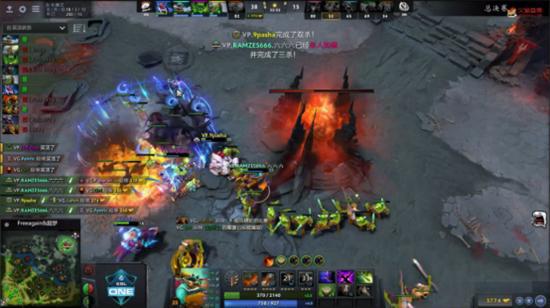 9分钟VG一波决策出现了重大失误,VG双大哥+巫医推下塔耗费了太多的时间,被VP小小+陈包了后路,一波0换3不说,塔还被反补了。随后VP再次抓到落单的VG英雄,人头数来到14比6.