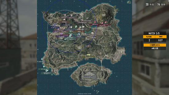 本场比赛的毒圈刷在了地图中间偏下的位置,这对于所有战队来说非常友好,但是经过几次缩圈之后的毒圈出现在了防空洞西面的山区,这个位置掩体非常少,地势又比较平坦,只能通过树和斜坡作为掩体,在毒边发生了频繁的战斗和减员。最终几个决赛圈大部分队伍选择圈边而不是深入圈中,但AST战队满编进圈占据高坡,打掉多个方向敌人。EDG和RF战队短兵相接,AST战队在高点劝架,渔翁得利,最后场上除了AST战队,只剩两个独狼,AST队员拉开枪线轻松清掉剩余敌人,以14个击杀拿下本场比赛头名。