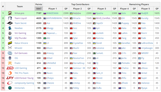 Liquid战队在进入前四拿到积分之后,反超了Secret战队,他们现在离晋级TI8也就仅差1200分左右。