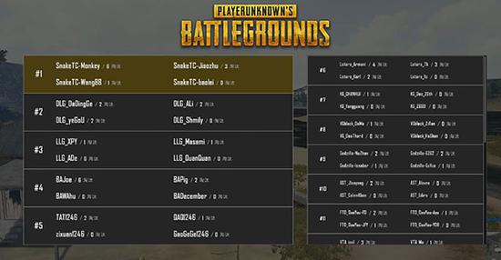 决赛圈最终来到渔村的山崖附近,站在山坡上的SnakeTC凭借Monkey手雷的精彩发挥直接团灭了BA,山坡下的DLG和LLG拼了个两败俱伤,SnakeTC抓住机会收掉两队,最终10杀吃鸡。